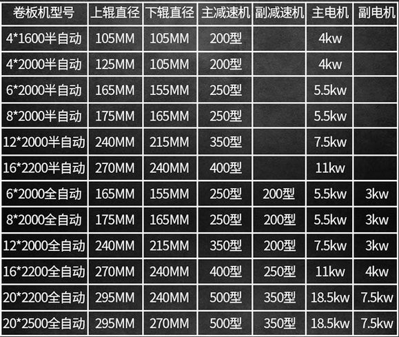 半自動卷板機結構形式為三輥對稱式。上輥在兩下輥中間對稱位置作垂直升降運動,通過絲杠實現上輥的升降,便使所卷制的材料變形,該卷板機是用于金屬板材型材彎曲、變型的一種通用設備,它借助于專用工具或其它設備來完成板材端面的預彎,可以卷制圓形、弧形工件,在石油、化工、鍋爐、水電、造船、工業(yè)設備安裝以及機械制造行業(yè)中有著廣泛的應用。該機器采用倒順開關(已安裝在卷板機上)來實現卷板的正、反轉,檢查機器無誤后,調節(jié)絲杠讓上輥壓至板材表面,把倒順開關打到“倒”“順”視現場板材的放入端而定讓電動機正轉還是把反轉,卷制一邊后,手動調節(jié)絲杠讓上輥壓緊板材在“倒”“順”卷制,如此循環(huán)直至達至要求為止。